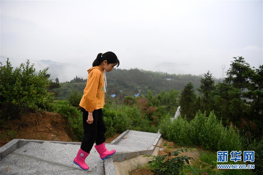 6月20日,蔡齊艷在山頂玩耍。高灣村新修了旅游觀光步道,以發(fā)展旅游脫貧項(xiàng)目。新華社記者劉軍喜攝