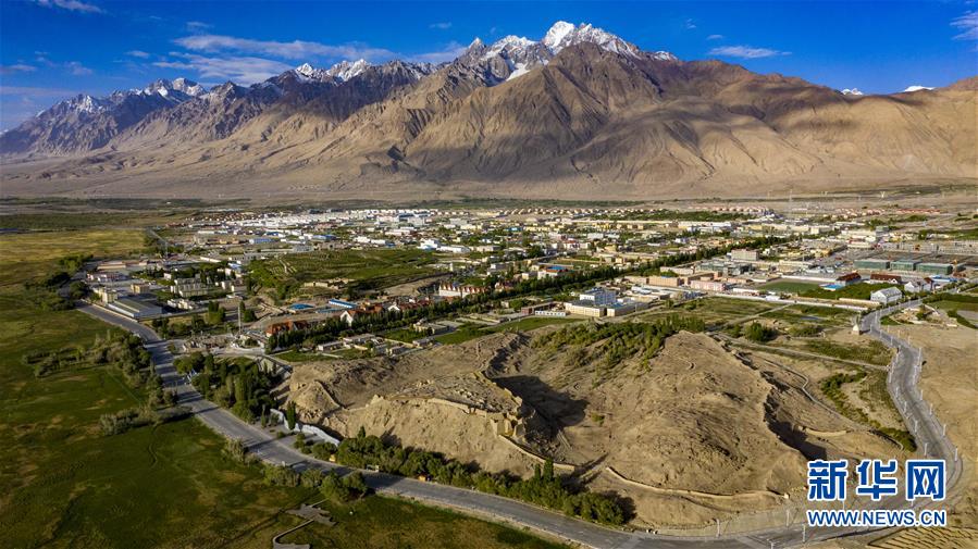 位于帕米爾高原上的新疆塔什庫爾干塔吉克自治縣縣城(6月10日攝,無人機照片)。新華社記者胡虎虎攝