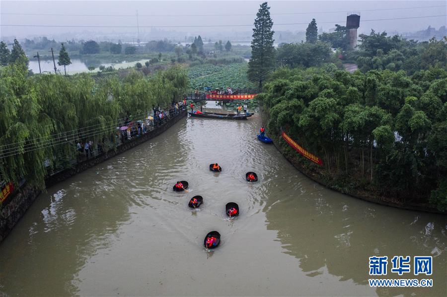 6月23日,東林鎮(zhèn)村民在泉心村荷花池參加端午劃菱桶趣味活動(無人機照片)。當日,浙江省湖州市東林鎮(zhèn)在泉心村荷花池舉辦“慶端午劃菱桶”趣味活動。村民們劃著菱桶在水面上你追我趕,同時采收荷花和蓮蓬,呈現(xiàn)出水鄉(xiāng)特有的端午節(jié)日氛圍。在河網(wǎng)密布的東林鎮(zhèn),菱桶是水鄉(xiāng)家家戶戶都有的一種傳統(tǒng)水上勞動工具,村民在捕魚、采菱、采荷時都要用到。新華社記者徐昱攝