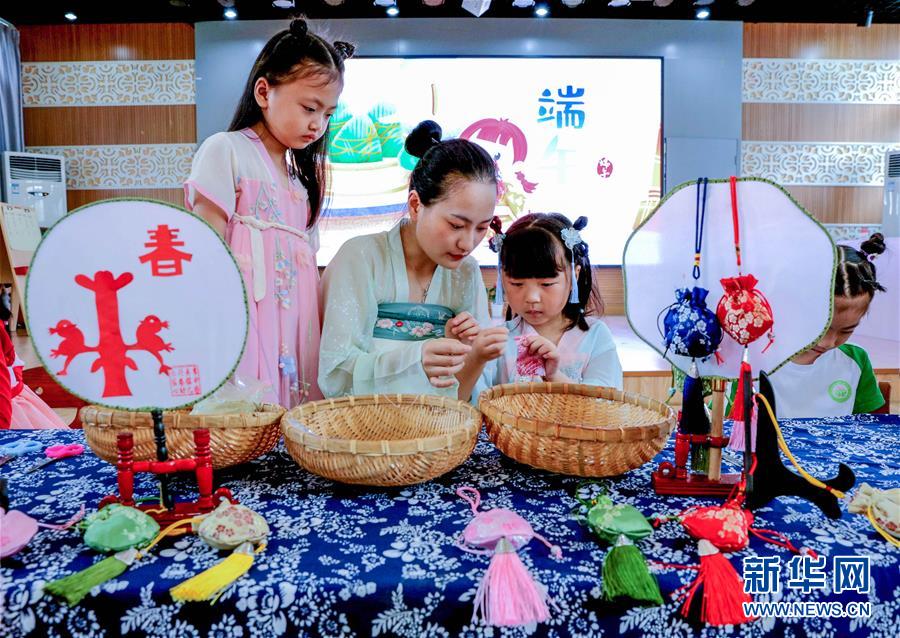 6月23日,長興縣李家巷鎮(zhèn)中心幼兒園的孩子們在老師的帶領(lǐng)下,一起制作端午香囊。為了迎接即將到來的端午節(jié),浙江省湖州市長興縣各個幼兒園開展“品民俗迎端午”主題活動,讓小朋友們體驗傳統(tǒng)民俗文化。新華社記者徐昱攝