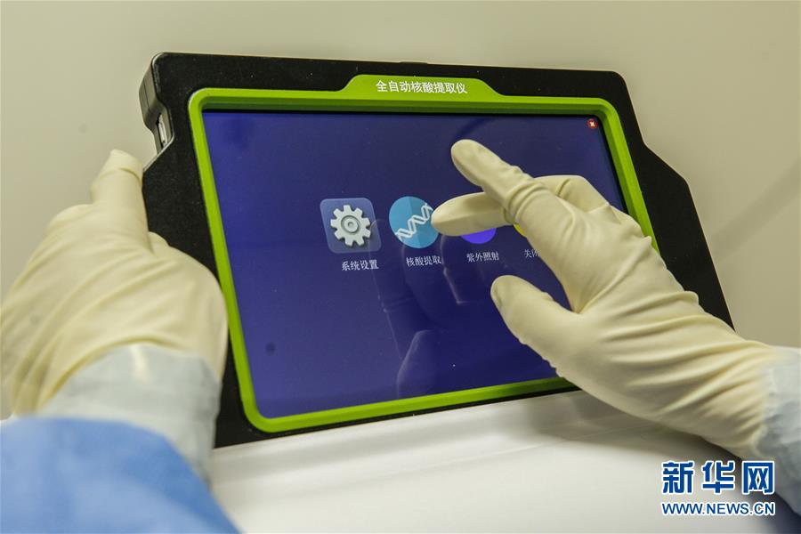 6月23日,檢驗(yàn)人員操作全自動(dòng)核酸提取儀。6月15日,北京市普仁醫(yī)院PCR實(shí)驗(yàn)室正式啟用,并立即投入到新冠肺炎病毒核酸檢測(cè)工作之中,為新冠肺炎疫情防控增添利器。普仁醫(yī)院PCR實(shí)驗(yàn)室啟用以來(lái),除了來(lái)自本院發(fā)熱門(mén)診、門(mén)急診、病房和核酸檢測(cè)采樣點(diǎn)的樣本之外,還承接了社區(qū)以及東城區(qū)集中核酸檢測(cè)點(diǎn)采集的部分樣本。新華社記者張玉薇攝