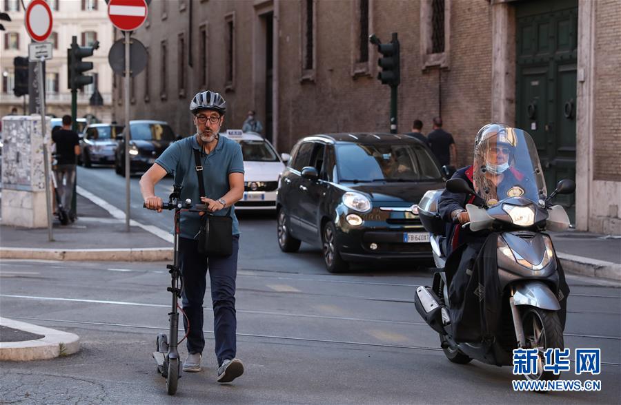 6月23日,在意大利首都羅馬,一名女子騎著電動(dòng)踏板車在城市中穿行。隨著意大利新冠疫情繼續(xù)緩解,城市的街道上也逐漸恢復(fù)了往日的喧鬧。由于體積小、易于使用,電動(dòng)踏板車迅速成為了人們城市短途出行的首選。新華社記者程婷婷攝