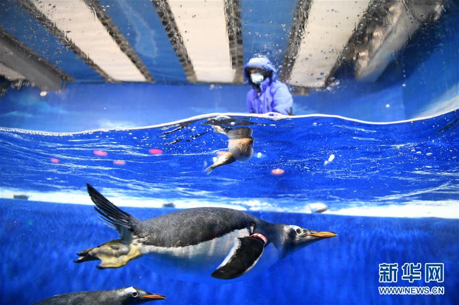 6月24日,哈爾濱極地館的工作人員為水中的企鵝投放“魚(yú)粽”。當(dāng)日,哈爾濱極地館的工作人員特地準(zhǔn)備了“魚(yú)粽”“肉粽”,讓生活在這里的極地動(dòng)物也品嘗一下端午美食。新華社記者王建威攝