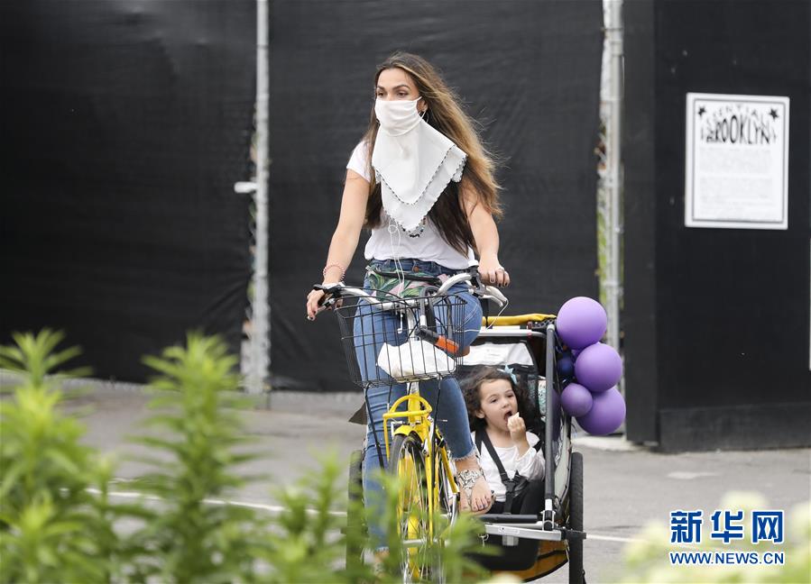 6月27日,一名女士在美國(guó)紐約多米諾公園內(nèi)騎車帶孩子游玩。美國(guó)約翰斯·霍普金斯大學(xué)27日發(fā)布的新冠疫情最新統(tǒng)計(jì)數(shù)據(jù)顯示,截至美國(guó)東部時(shí)間27日16時(shí)35分(北京時(shí)間28日4時(shí)35分),美國(guó)累計(jì)新冠確診病例2500419例,累計(jì)死亡病例125434例。新華社記者王迎攝