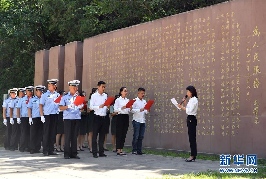 6月29日,在延安市張思德廣場(chǎng),黨員干部在誦讀《為人民服務(wù)》。臨近“七一”,革命圣地延安的黨員干部紛紛來(lái)到紅色景區(qū),舉行主題黨課、現(xiàn)場(chǎng)教學(xué)、重溫入黨誓詞等活動(dòng)。新華社記者張博文攝