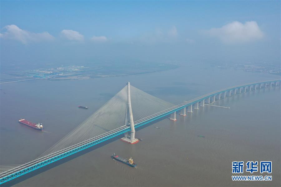 滬蘇通長江公鐵大橋(6月30日攝,無人機(jī)照片)。即將于7月1日通車的滬蘇通長江公鐵大橋北起江蘇南通,南至江蘇張家港,公鐵合建跨江正橋全長5827米,為集合高速公路、客貨混線鐵路、高速鐵路的“三合一”過江通道,建成通車后將有效促進(jìn)長三角城市群跨江融合、協(xié)同發(fā)展。新華社記者季春鵬攝