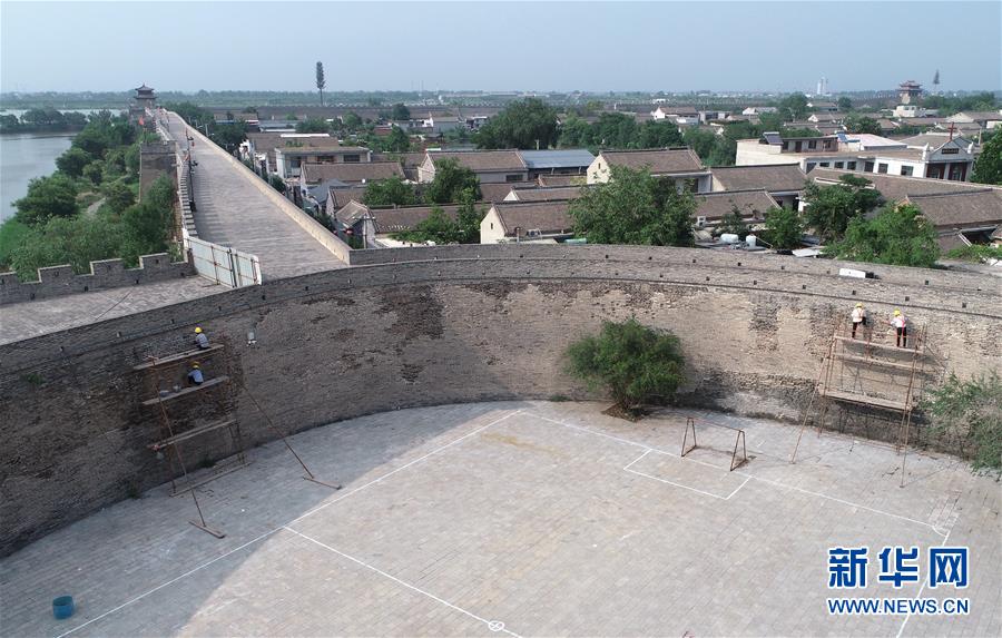7月2日,工作人員在永年廣府古城修繕城墻(無(wú)人機(jī)照片)。經(jīng)國(guó)家文物局和河北省文物局批準(zhǔn),河北永年廣府古城修繕工程已全面啟動(dòng)。在文物專家全程參與下,按照“不改變文物原狀”原則進(jìn)行修繕,預(yù)計(jì)2021年4月底完工。永年廣府古城擁有華北地區(qū)保存最完整的古城墻,現(xiàn)為全國(guó)重點(diǎn)文物保護(hù)單位。新華社記者王曉攝