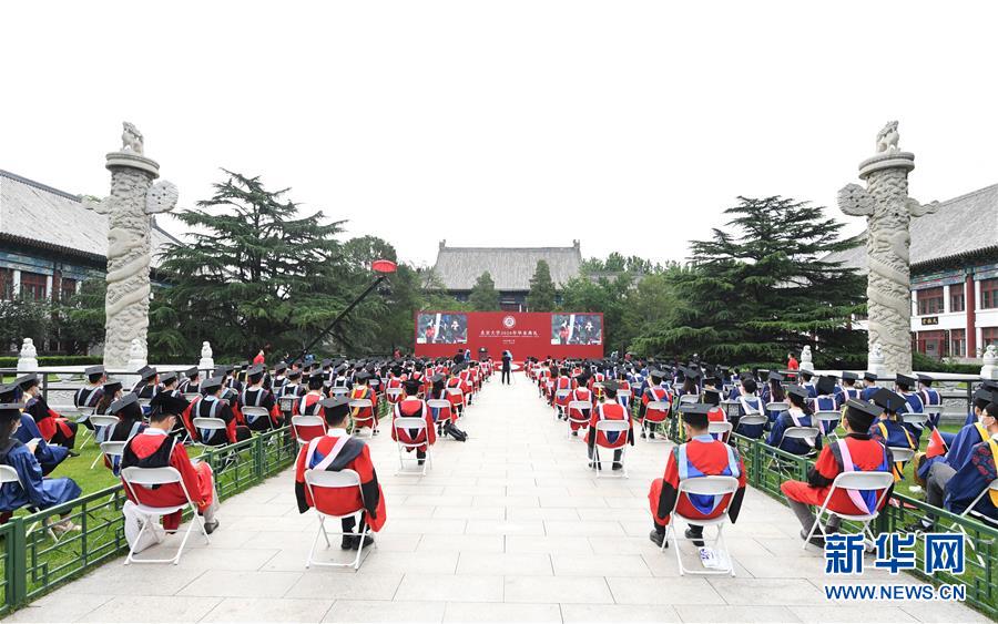 7月2日拍攝的北京大學(xué)2020年畢業(yè)典禮辦公樓西側(cè)廣場(chǎng)會(huì)場(chǎng)。當(dāng)日,北京大學(xué)舉行2020年畢業(yè)典禮。由于疫情防控需要,今年的典禮在北京大學(xué)辦公樓西側(cè)廣場(chǎng)、靜園草坪、未名湖等九個(gè)會(huì)場(chǎng)舉行,并面向全球進(jìn)行中英文雙語直播,僅部分在校畢業(yè)生現(xiàn)場(chǎng)參加,更多畢業(yè)生通過線上直播參與畢業(yè)典禮。新華社記者任超攝