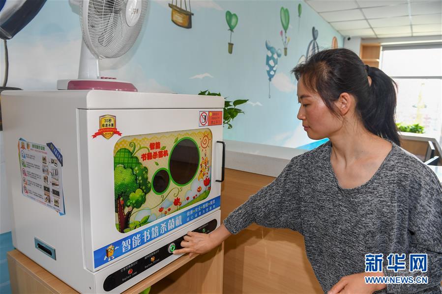 7月2日,在長春市少年兒童圖書館平陽社區(qū)繪本主題分館,管理員金敏為圖書進行消殺。長春市少年兒童圖書館平陽社區(qū)繪本主題分館位于南關(guān)區(qū)曙光街道平陽社區(qū),目前藏書約5000冊。該館于6月30日揭牌開館,由長春市少年兒童圖書館和南關(guān)區(qū)曙光街道辦事處共同打造,是長春首個繪本主題圖書分館??蔀橹苓吘用窈蛢和峁﹫D書借閱、數(shù)字閱讀體驗、親子活動、少兒公益活動等服務。新華社記者張楠攝