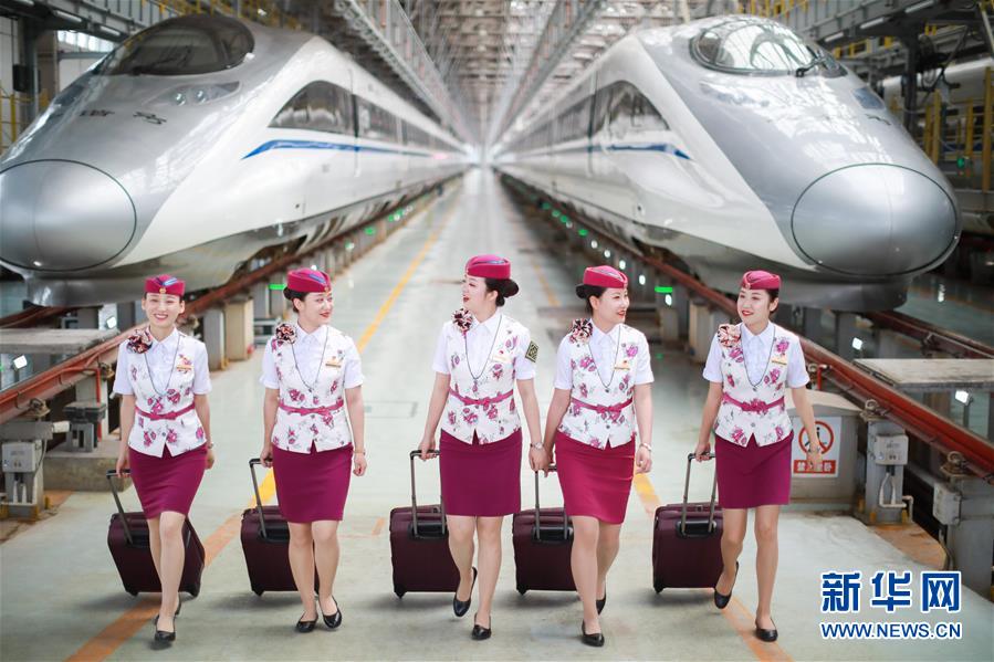 7月3日,擔任首發(fā)列車值乘工作的貴陽客運段乘務員在貴陽亮相。 新華社記者 劉續(xù) 攝