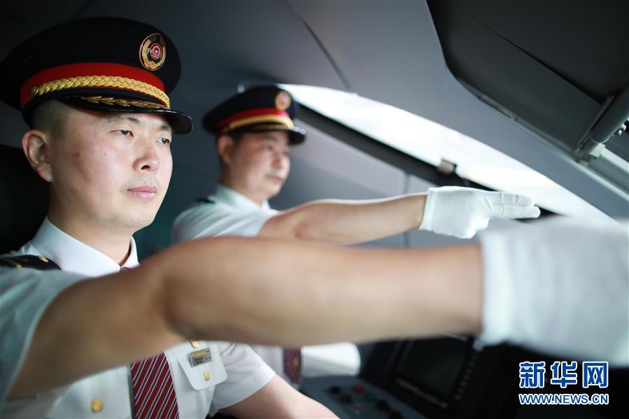 7月3日,擔(dān)任首發(fā)列車值乘工作的貴陽(yáng)機(jī)務(wù)段司機(jī)在貴陽(yáng)亮相。 新華社記者 劉續(xù) 攝