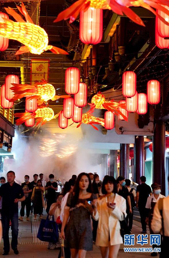 7月3日在上海豫園拍攝的燈景。從7月第一個(gè)周末起,上海豫園原有的“豫園六點(diǎn)半”集市全面升級(jí),煥彩燈光、演藝活動(dòng)和花車(chē)集市全線更新,讓市民和游客在觀燈、觀人、觀演的沉浸式體驗(yàn)中,享受夏日特色的“食玩”樂(lè)趣。新華社記者 劉穎 攝