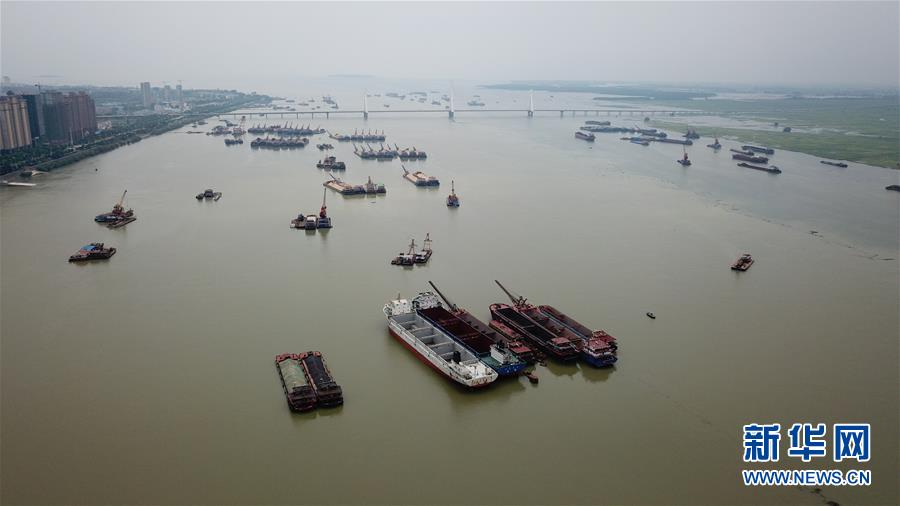 7月5日拍攝的岳陽洞庭湖主航道(無人機(jī)照片)。受持續(xù)強(qiáng)降雨和上游來水影響,洞庭湖城陵磯水位持續(xù)上漲。水文監(jiān)測(cè)數(shù)據(jù)顯示,截至7月5日16時(shí),洞庭湖城陵磯水位達(dá)到32.75米,超警戒水位0.25米。當(dāng)?shù)胤姥床块T正嚴(yán)密監(jiān)控水情雨情,備好防汛物資并加強(qiáng)應(yīng)急值守,力爭(zhēng)安全度汛。新華社記者陳澤國攝