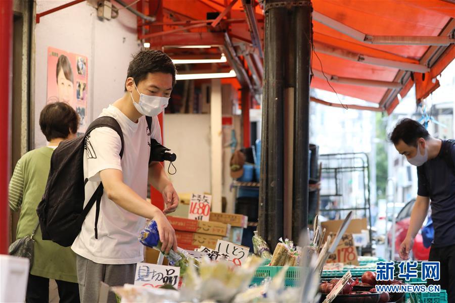 7月5日,在日本東京,人們戴口罩選購蔬果。據(jù)日本廣播協(xié)會(huì)電視臺(tái)5日統(tǒng)計(jì),截至當(dāng)?shù)貢r(shí)間22時(shí)(北京時(shí)間21時(shí)),日本當(dāng)日新增新冠確診病例208例,連續(xù)3天單日新增超過200例,目前累計(jì)確診19822例,累計(jì)死亡977例。新華社記者杜瀟逸攝