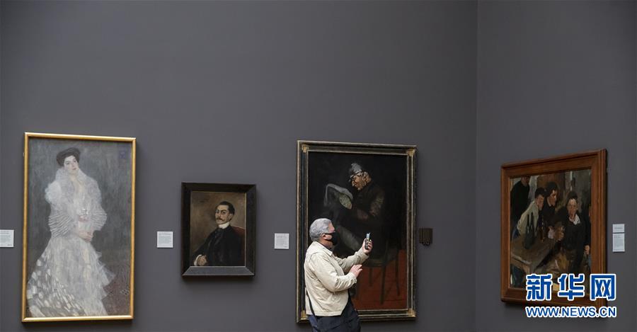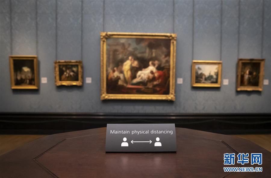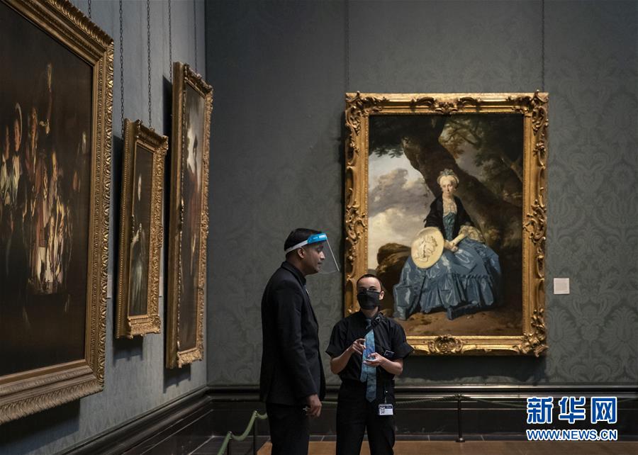 7月4日,參觀者佩戴口罩在英國國家美術(shù)館的媒體開放日上參觀。新華社記者韓巖攝