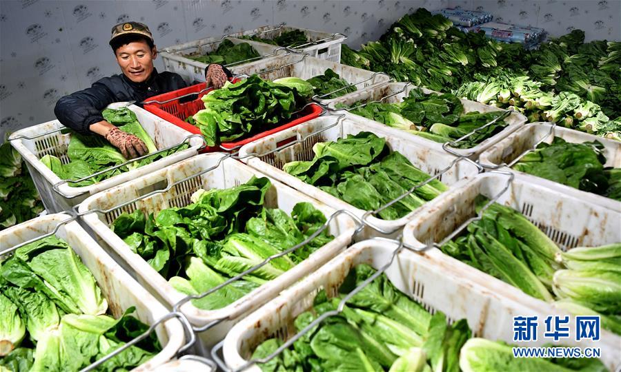 在陜西太白縣咀頭鎮(zhèn)咀頭街村供港蔬菜示范基地內(nèi),工作人員往冷庫里擺放羅馬生菜(7月4日攝)。新華社記者劉瀟攝