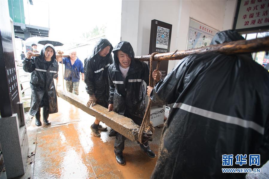 7月6日,工作人員在武漢龍王廟封堵閘口。記者6日從武漢市防汛抗旱指揮部辦公室獲悉,5日以來,武漢遭暴雨襲擊,全市多處路段漬水。至6日4時,長江漢口站超設(shè)防水位1.79米,漢江新溝站超警戒水位0.01米。鑒于當前水雨汛情和漬澇情況,武漢市從6日5時起,將排澇應(yīng)急響應(yīng)級別提升至Ⅱ級;從6時30分起,將防汛應(yīng)急響應(yīng)級別提升至Ⅱ級。新華社記者肖藝九攝