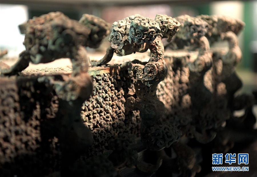 這是河南博物院展廳里的云紋銅禁局部(2019年11月18日攝)。新華社記者李安攝