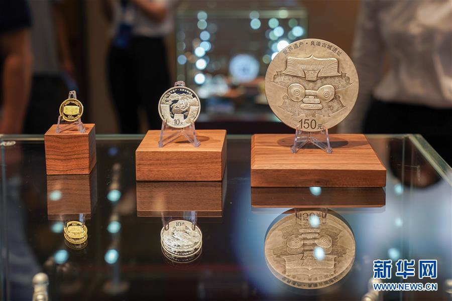 這是首發(fā)儀式現(xiàn)場(chǎng)展示的紀(jì)念幣(7月6日攝)。7月6日,正值良渚古城遺址成功申報(bào)世界文化遺產(chǎn)一周年。中國人民銀行于當(dāng)天發(fā)行世界遺產(chǎn)(良渚古城遺址)金銀紀(jì)念幣一套,首發(fā)儀式在浙江良渚古城遺址公園舉行。新華社記者殷曉圣攝