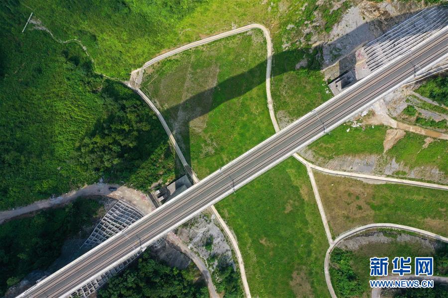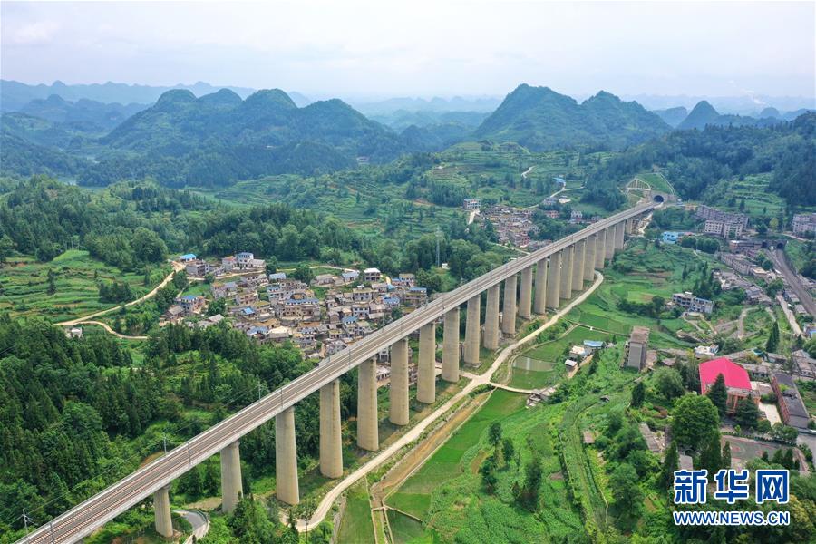 7月6日拍攝的安六鐵路彭家沖一號大橋附近的景觀(無人機照片)。當日,新建貴州安六鐵路(安順至六盤水)聯(lián)調聯(lián)試工作進入收尾階段,開通前的各項準備工作已基本就緒。安六鐵路線路全長約125公里,設計時速250公里,為國家I級雙線客運專線。建成投用后,貴陽至六盤水的鐵路旅行時間可從現(xiàn)在的3.5小時縮短為1小時左右,貴州省六盤水市將全面接入全國高鐵網。新華社記者劉續(xù)攝