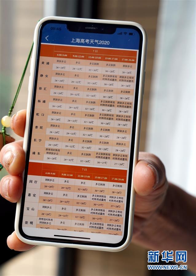 7月7日,上海市氣象部門推出“分時分區(qū)”的高考?xì)庀蠓?wù)。當(dāng)日,2020年高考拉開帷幕。新華社記者劉穎攝