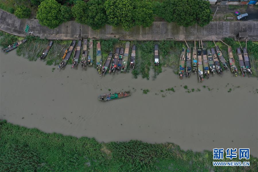 在吳興高新區(qū)幻溇村的避風(fēng)港,停泊了大批漁船(7月7日攝,無人機(jī)照片)。近日,位于浙江北部的湖州市遭遇多輪降雨,東部平原河網(wǎng)普遍超警戒水位,水庫山塘高位運(yùn)行。7月5日12時30分,湖州市人民政府防汛防旱指揮部將防汛應(yīng)急響應(yīng)提升至Ⅲ級,要求各地密切監(jiān)測汛情,切實做好各項防范工作,確保安全度汛。新華社記者黃宗治攝