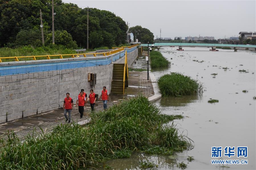 7月7日,吳興高新區(qū)幻溇村黨員志愿者在巡查河道。近日,位于浙江北部的湖州市遭遇多輪降雨,東部平原河網(wǎng)普遍超警戒水位,水庫山塘高位運(yùn)行。7月5日12時30分,湖州市人民政府防汛防旱指揮部將防汛應(yīng)急響應(yīng)提升至Ⅲ級,要求各地密切監(jiān)測汛情,切實做好各項防范工作,確保安全度汛。新華社記者黃宗治攝