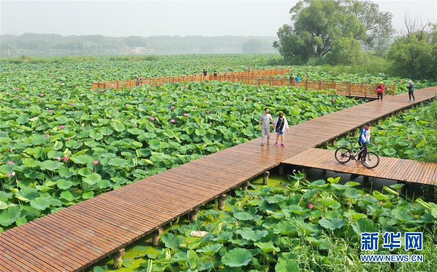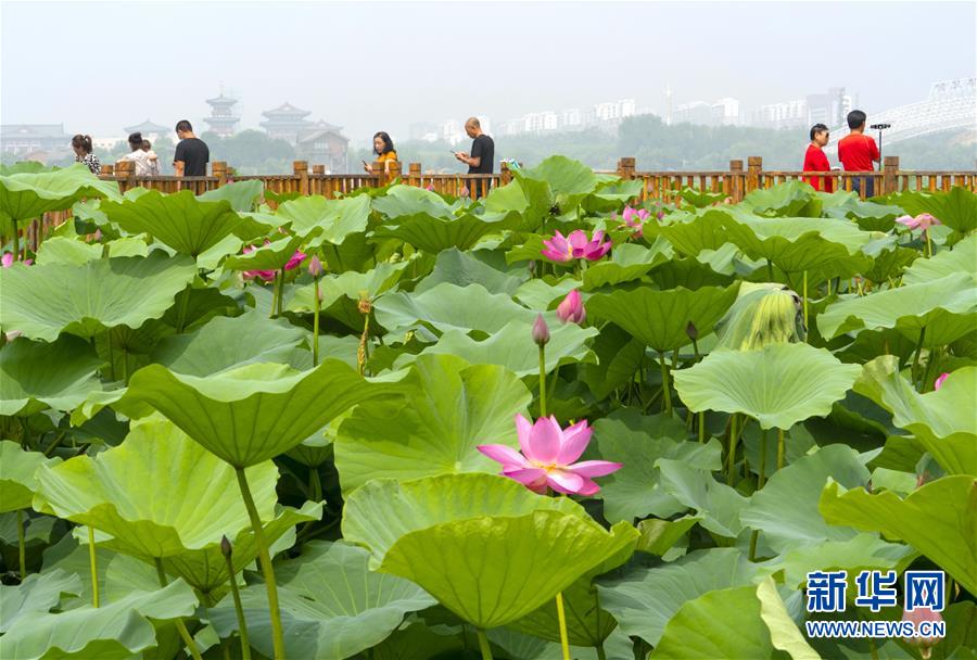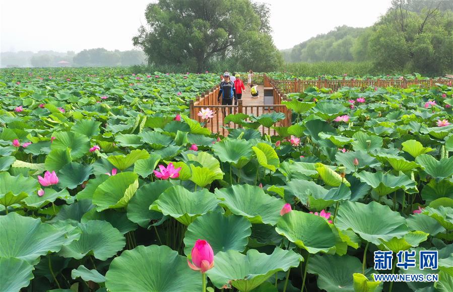 7月7日,游客在唐山市南湖公園欣賞盛開的荷花。近日,河北省唐山市南湖公園內(nèi)荷花競(jìng)相綻放,呈現(xiàn)出“接天蓮葉無(wú)窮碧,映日荷花別樣紅”的美麗景象,吸引了眾多游客前來(lái)觀賞。新華社記者楊世堯攝