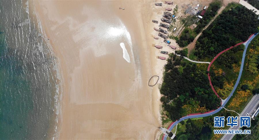 7月7日拍攝的緊靠海岸線的日照陽光海岸綠道(無人機(jī)照片)。新華社記者王凱攝