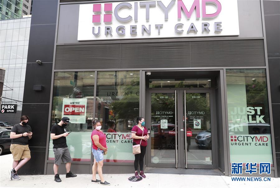 7月8日,人們在美國紐約一家診所外排隊(duì)等候進(jìn)行新冠病毒檢測。美國約翰斯·霍普金斯大學(xué)8日發(fā)布的新冠疫情最新統(tǒng)計(jì)數(shù)據(jù)顯示,美國累計(jì)確診病例超過300萬例。數(shù)據(jù)顯示,截至美國東部時間8日11時34分(北京時間23時34分),美國累計(jì)確診病例3016515例,累計(jì)死亡病例131594例。新華社記者王迎攝