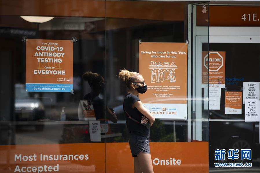 7月8日,一名女子在美國紐約一家診所外等候進(jìn)行新冠病毒檢測(cè)。美國約翰斯·霍普金斯大學(xué)8日發(fā)布的新冠疫情最新統(tǒng)計(jì)數(shù)據(jù)顯示,美國累計(jì)確診病例超過300萬例。數(shù)據(jù)顯示,截至美國東部時(shí)間8日11時(shí)34分(北京時(shí)間23時(shí)34分),美國累計(jì)確診病例3016515例,累計(jì)死亡病例131594例。新華社記者王迎攝