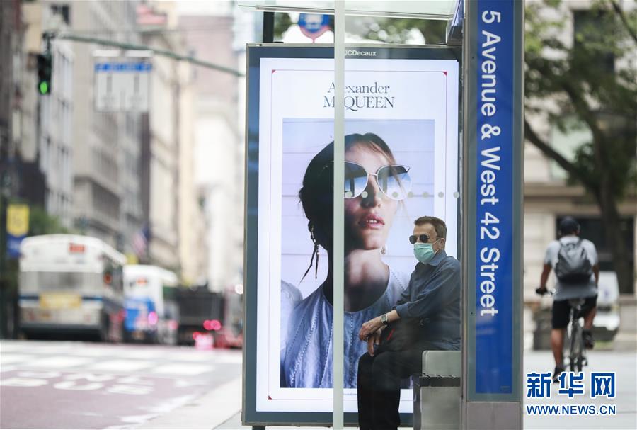7月8日,一名男子在紐約第五大道的公交車(chē)站等車(chē)。美國(guó)約翰斯·霍普金斯大學(xué)8日發(fā)布的新冠疫情最新統(tǒng)計(jì)數(shù)據(jù)顯示,美國(guó)累計(jì)確診病例超過(guò)300萬(wàn)例。數(shù)據(jù)顯示,截至美國(guó)東部時(shí)間8日11時(shí)34分(北京時(shí)間23時(shí)34分),美國(guó)累計(jì)確診病例3016515例,累計(jì)死亡病例131594例。新華社記者王迎攝