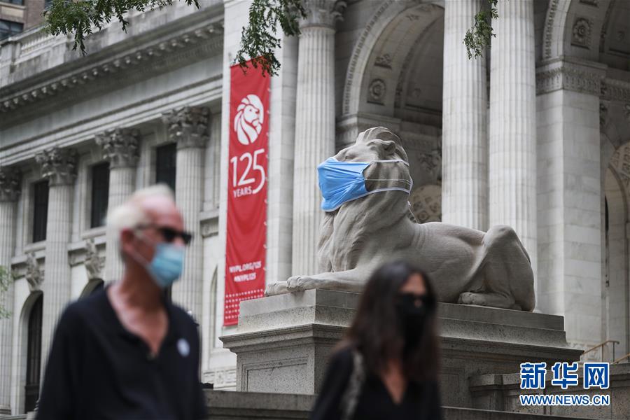 這是7月8日在美國紐約公共圖書館前拍攝的“戴”口罩的石獅子。美國約翰斯·霍普金斯大學8日發(fā)布的新冠疫情最新統(tǒng)計數(shù)據(jù)顯示,美國累計確診病例超過300萬例。數(shù)據(jù)顯示,截至美國東部時間8日11時34分(北京時間23時34分),美國累計確診病例3016515例,累計死亡病例131594例。新華社記者王迎攝