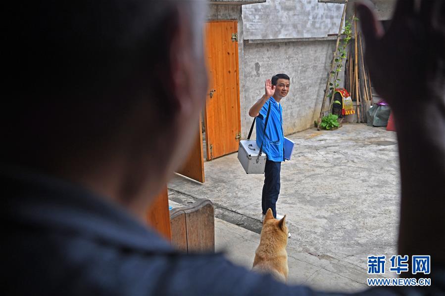 7月8日,在長垌村出診結束后,村民與陶雷揮手告別。新華社記者周華攝