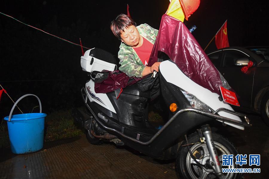 7月7日深夜,在沅江市南嘴鎮(zhèn)目平湖大堤參加防汛值守的村民交接班后準(zhǔn)備騎車回家。新華社記者陳澤國(guó)攝