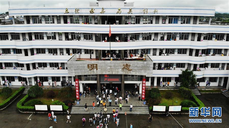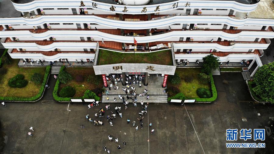 7月9日,考生進(jìn)入歙縣第二中學(xué)考點(diǎn)(無人機(jī)照片)。受強(qiáng)降雨影響,2020年高考安徽歙縣考區(qū)7月7日未能如期開考,經(jīng)研究并報(bào)教育部批準(zhǔn),歙縣考區(qū)于9日啟用2020年普通高等學(xué)校招生全國(guó)統(tǒng)一考試語文、數(shù)學(xué)(文、理)科目副題進(jìn)行考試。新華社記者黃博涵攝