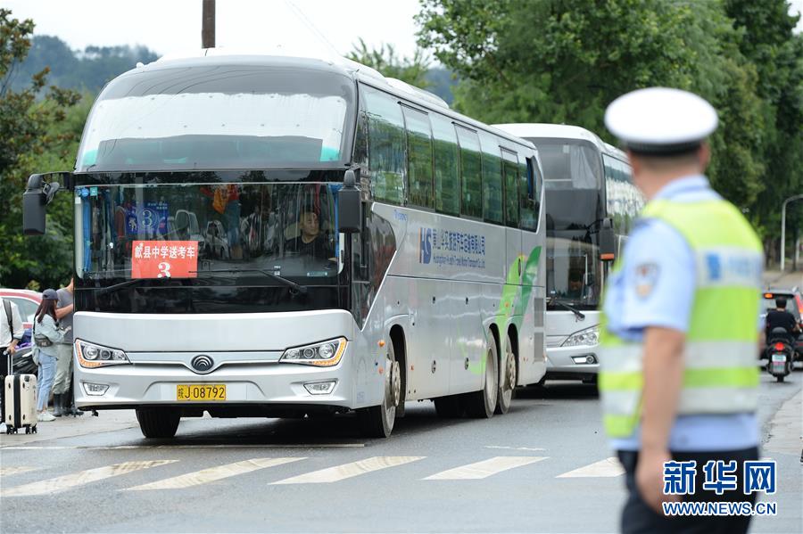 7月9日,接送考生的大巴車抵達(dá)歙縣第二中學(xué)考點(diǎn)。受強(qiáng)降雨影響,2020年高考安徽歙縣考區(qū)7月7日未能如期開考,經(jīng)研究并報(bào)教育部批準(zhǔn),歙縣考區(qū)于9日啟用2020年普通高等學(xué)校招生全國(guó)統(tǒng)一考試語文、數(shù)學(xué)(文、理)科目副題進(jìn)行考試。新華社記者黃博涵攝