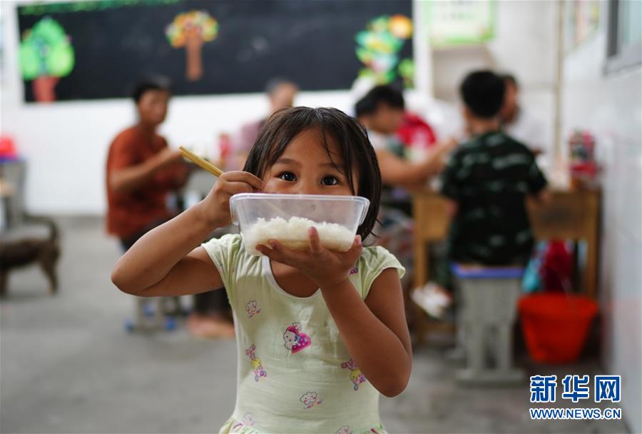 7月9日,小朋友在安置點(diǎn)里吃飯。當(dāng)日,江西鄱陽(yáng)縣鄱陽(yáng)鎮(zhèn)因洪水受災(zāi)的村民被轉(zhuǎn)移到多個(gè)集中安置點(diǎn)。在鄱陽(yáng)縣五一中心學(xué)校安置點(diǎn),志愿者和工作人員接到任務(wù)后不到十小時(shí)內(nèi),為被轉(zhuǎn)移村民布置了28間教室,供519人安頓,并為村民發(fā)放褥子、床單、枕頭、盒飯、飲用水等物資。新華社記者周密攝