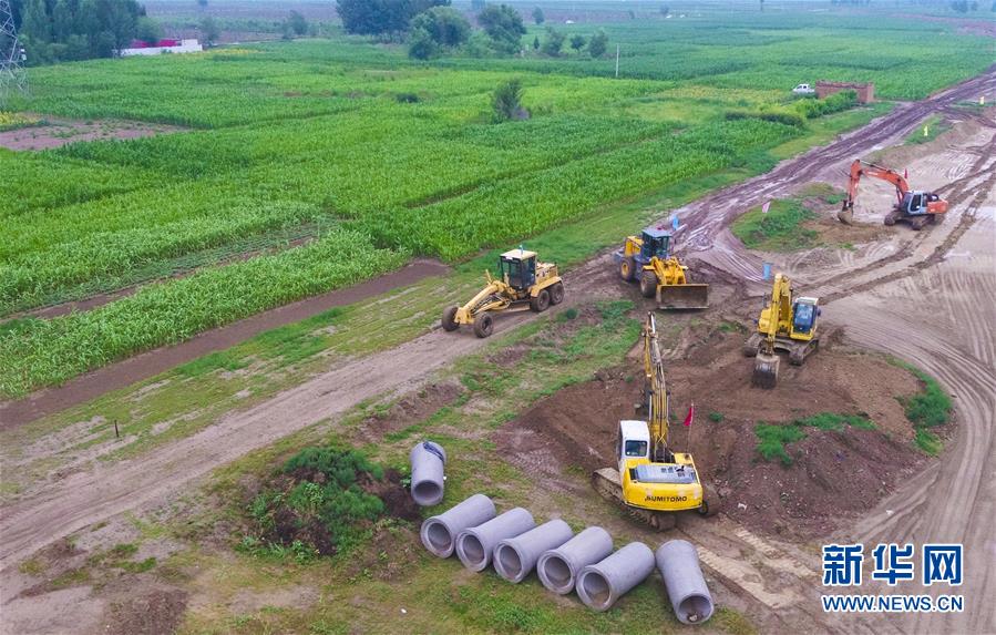 7月9日,工人在文安縣孫氏鎮(zhèn)孫文線建設(shè)現(xiàn)場施工。該條公路全長9.7公里,預(yù)計建成后將帶動縣域南部近40個村街發(fā)展(無人機照片)。近年來,河北省文安縣推進實施縣鄉(xiāng)公路改造、窄路基路面拓寬、村社道路硬化、危橋改造、安全生命防護等工程,不斷完善農(nóng)村物流網(wǎng)絡(luò),推動城鄉(xiāng)交通基礎(chǔ)設(shè)施互聯(lián)互通。新華社記者李曉果攝