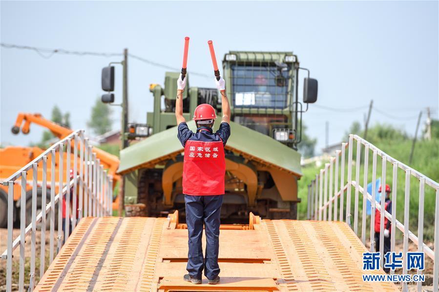 7月10日,工作人員在演練現(xiàn)場搭建機(jī)械化橋梁。當(dāng)日,由吉林省交通運(yùn)輸廳主辦的公路橋梁水毀搶通應(yīng)急演練在長春市雙陽區(qū)雙陽河舉行,參與演練人員從汛情水毀信息報(bào)送、應(yīng)急裝備快速集結(jié)、機(jī)械化橋梁搶通搭設(shè)、善后處理等方面進(jìn)行實(shí)戰(zhàn)演練。新華社記者張楠攝