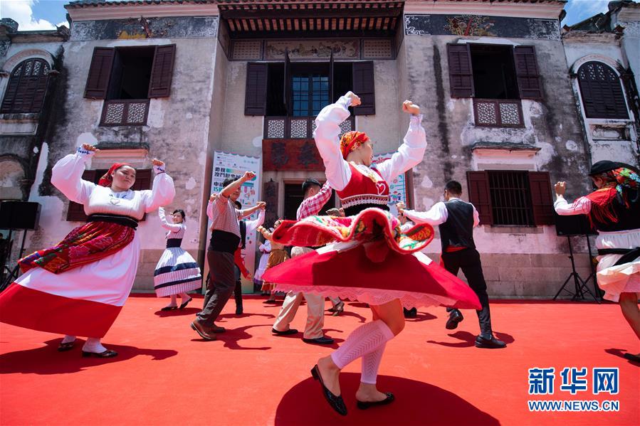 7月11日,演員在“慶祝澳門歷史城區(qū)申遺成功15周年嘉年華”上表演土風舞。新華社記者張金加攝