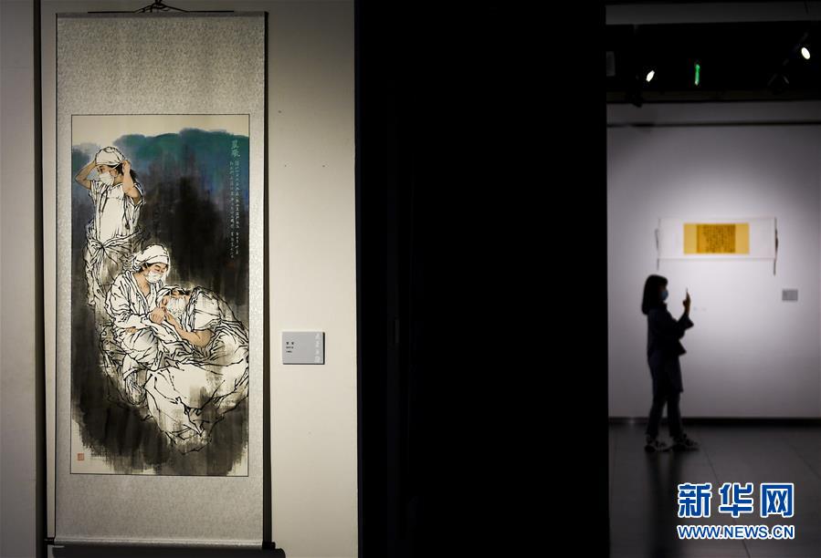 7月11日,觀眾在吉林省抗疫主題美術(shù)·攝影作品展上參觀。近日,“大愛(ài)無(wú)疆——吉林省抗疫主題美術(shù)·攝影作品展”在吉林省工藝美術(shù)館與觀眾見(jiàn)面。展覽共展出抗擊新冠肺炎疫情主題書(shū)法、國(guó)畫(huà)、油畫(huà)、攝影等作品367件(組)。新華社 記者許暢 攝