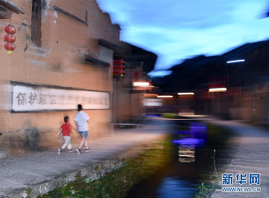 7月3日,兩名小朋友從浦源村鯉魚溪畔走過。新華社記者 姜克紅 攝