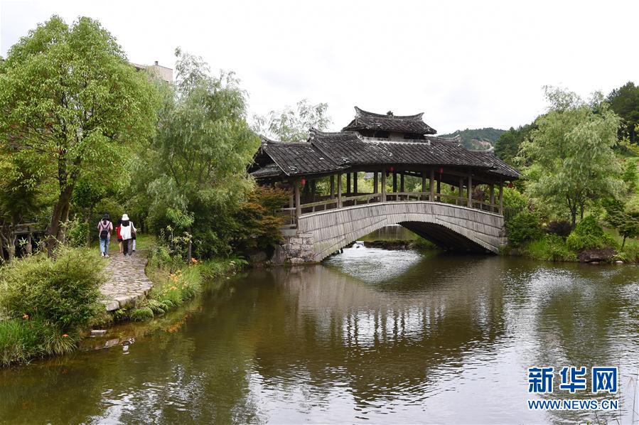 7月3日,游人前往浦源村鯉魚溪上游的一座傳統(tǒng)廊橋參觀游覽。新華社記者 姜克紅 攝