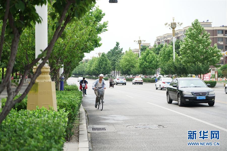 7月12日,市民在河北省唐山市古冶區(qū)城區(qū)街道上騎行。新華社記者 牟宇 攝