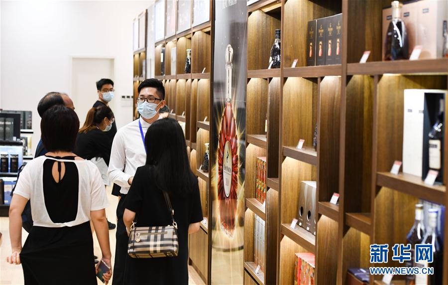 7月12日,游客在??谌赵聫V場免稅店選購酒類產品。新華社記者 楊冠宇 攝