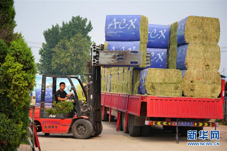 7月11日,河北省清河縣永興奶牛養(yǎng)殖場(chǎng)的工人在運(yùn)送奶牛飼料。近年來,河北省清河縣將扶貧工作與現(xiàn)代農(nóng)業(yè)結(jié)合,以龍頭企業(yè)為引領(lǐng),成立合作社,鼓勵(lì)貧困戶利用扶貧資金入股奶牛養(yǎng)殖場(chǎng),幫助他們常年獲得穩(wěn)定收益。同時(shí),貧困戶農(nóng)閑時(shí)還可到產(chǎn)業(yè)園區(qū)打工,既拿股金,又掙薪金,實(shí)現(xiàn)“造血式”脫貧。新華社記者 牟宇 攝