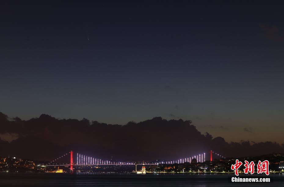 當(dāng)?shù)貢r(shí)間7月12日,土耳其伊斯坦布爾,當(dāng)?shù)匾箍罩锌捎^測到NEOWISE彗星。圖片來源:視覺中國