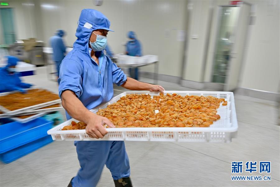 7月14日,福建省連江縣一家鮑魚加工企業(yè),工人在搬運鮑魚產(chǎn)品。新華社記者 姜克紅 攝