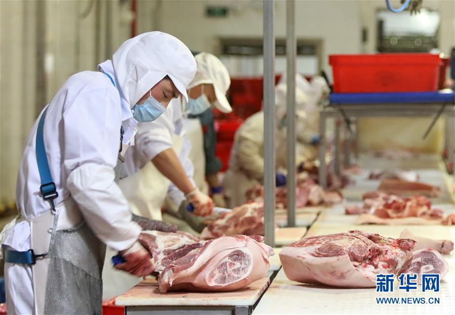 7月15日,北京二商肉類食品集團有限公司員工在肉類分割流水線上工作。北京二商肉類食品集團有限公司是保障北京肉類市場供應的主要企業(yè)之一。新冠肺炎疫情以來,企業(yè)嚴格實施北京市、農業(yè)農村部和中國肉類協(xié)會的防疫要求,對進入廠區(qū)的人員、車輛以及原料采購、屠宰分割、產品加工、貯藏運輸、廢棄物收集及污水處理等生產環(huán)節(jié)嚴格防疫,強調源頭把關徹底消毒。目前,集團公司下屬多家生豬屠宰加工基地正常運營,保質保量供應北京市場需求。新華社記者 李欣 攝